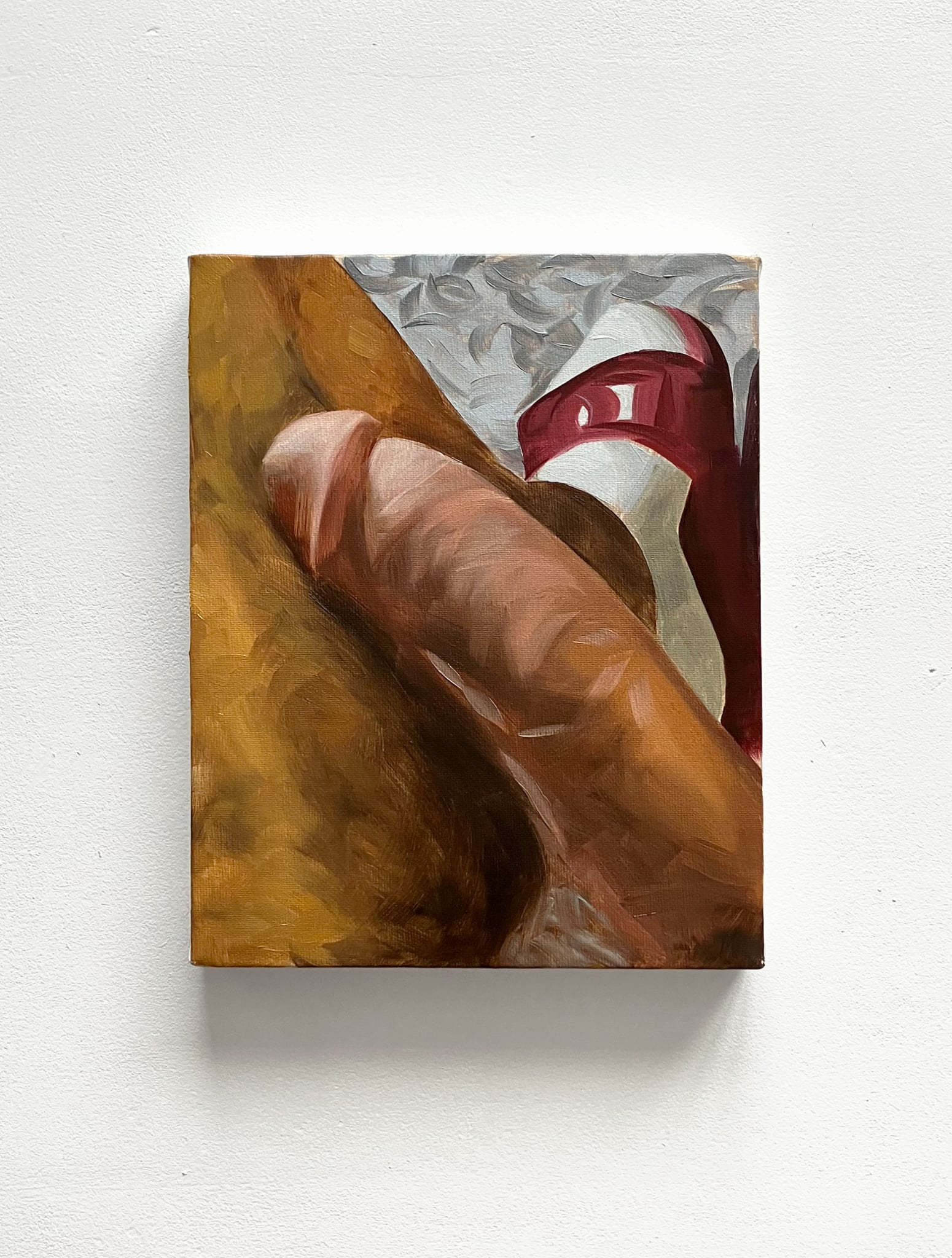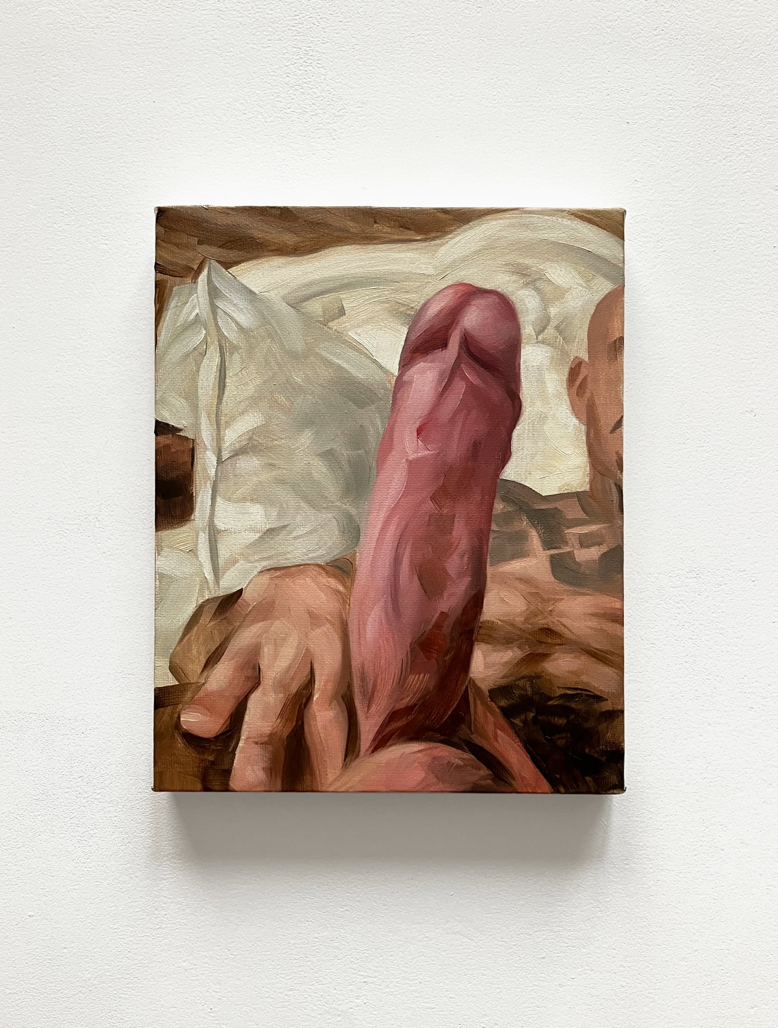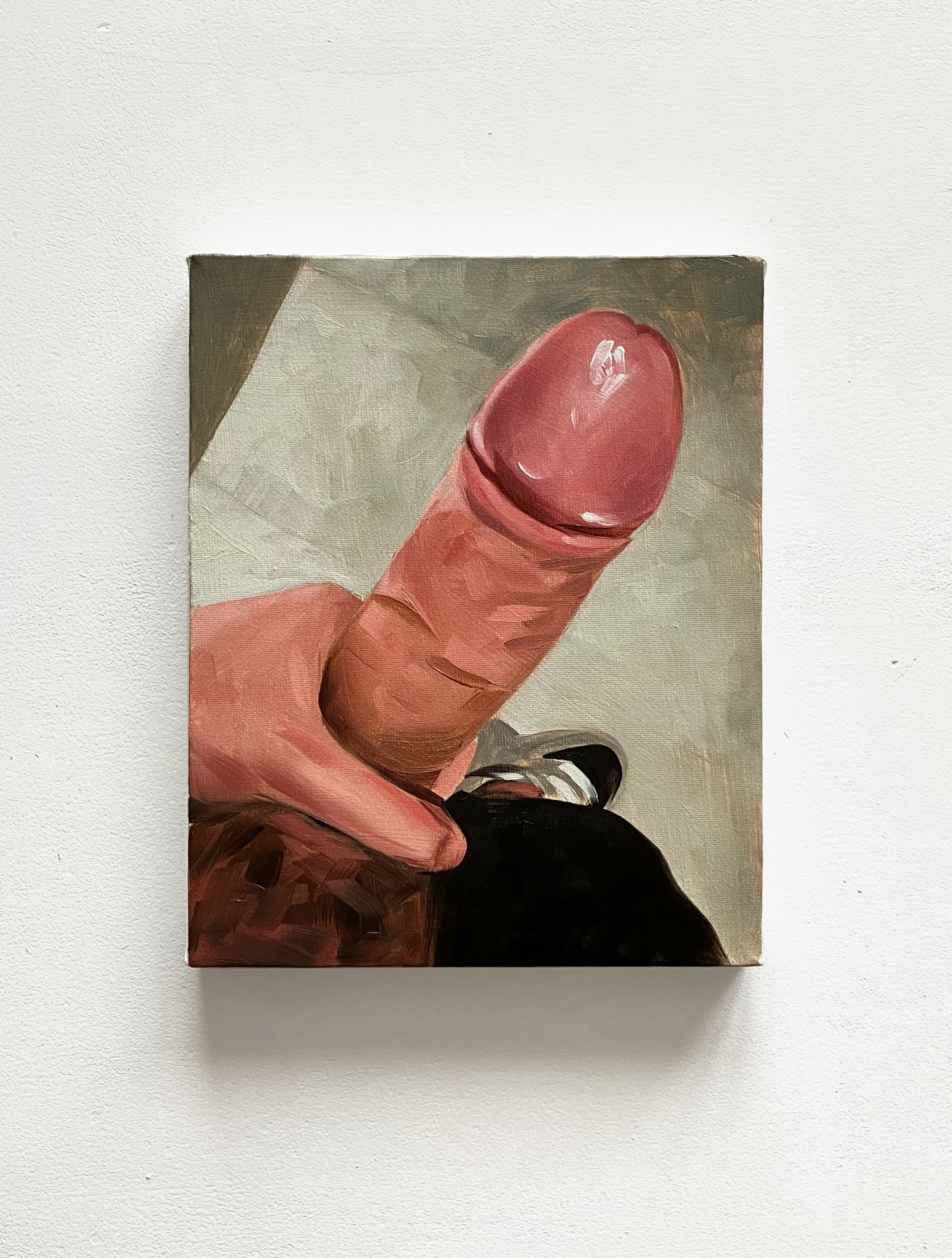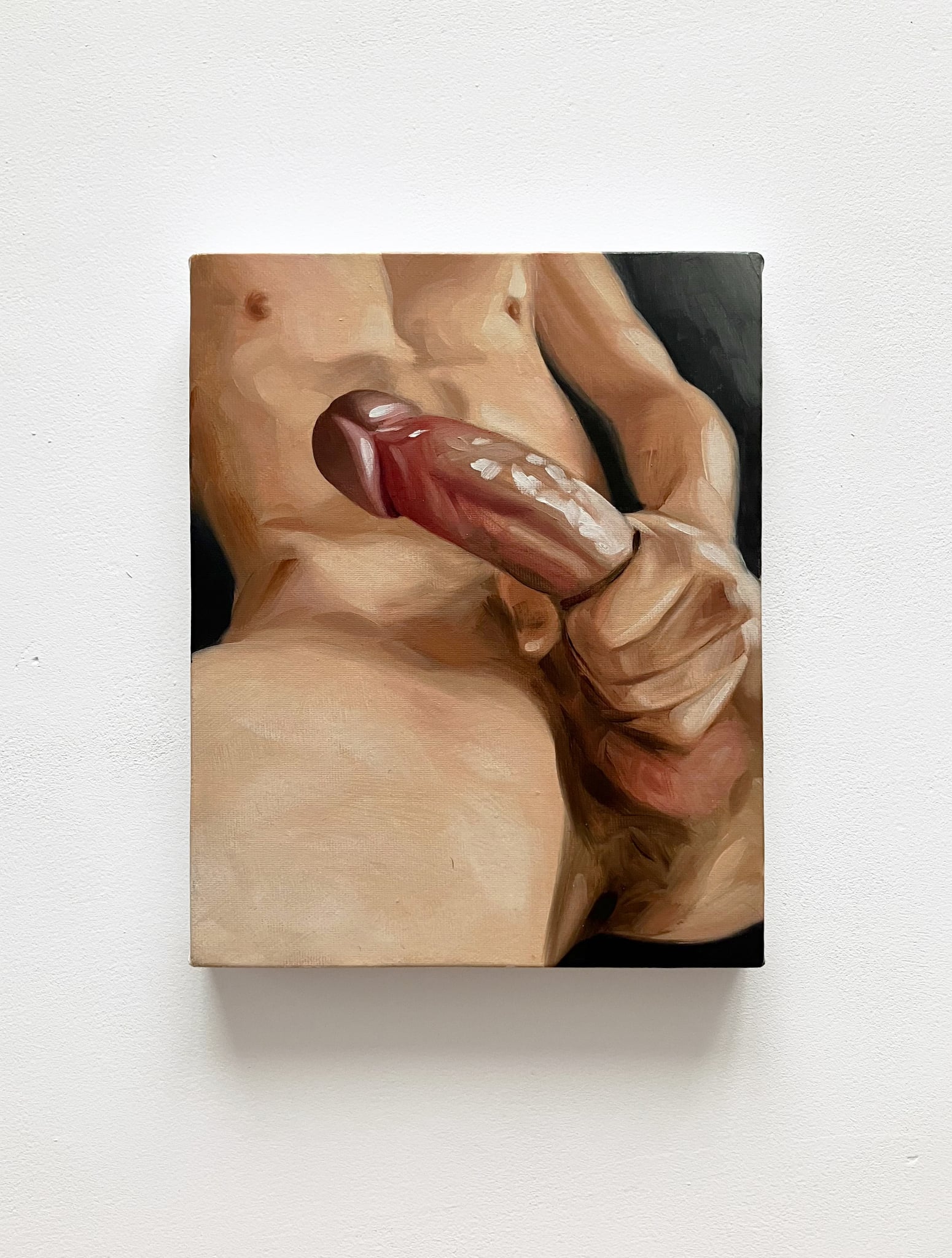 Each Panopti_CUM painting is oil on canvas, measuring 20 x 25 cm (7.9 x 9.8 in). I paint all of them based on photos received on Grindr or sent to me by email. If you’d like me to paint your cock as well and have it become a part of Panopti_CUM, just send me a pic and the painting will appear on the site soon.