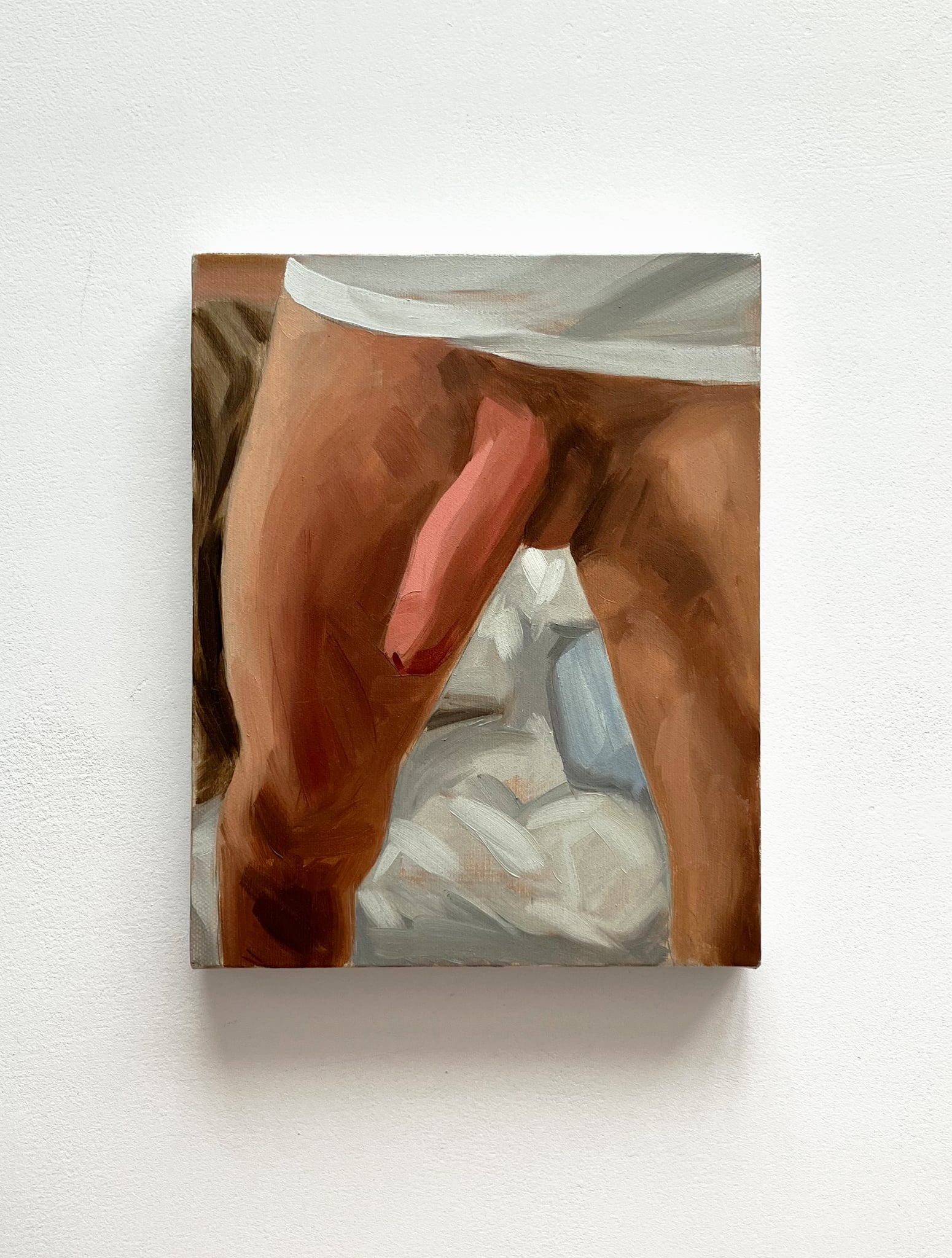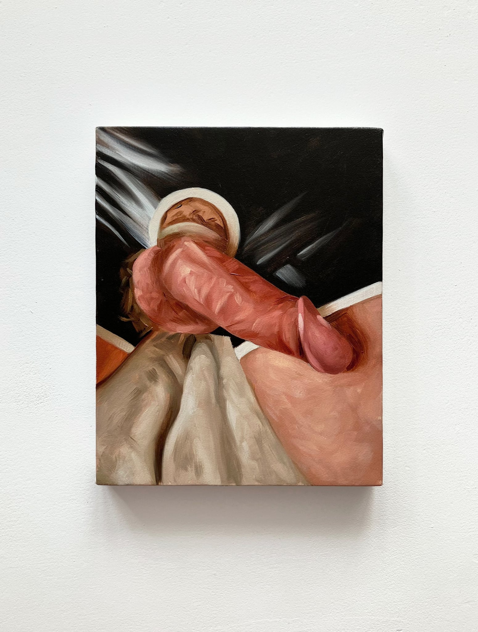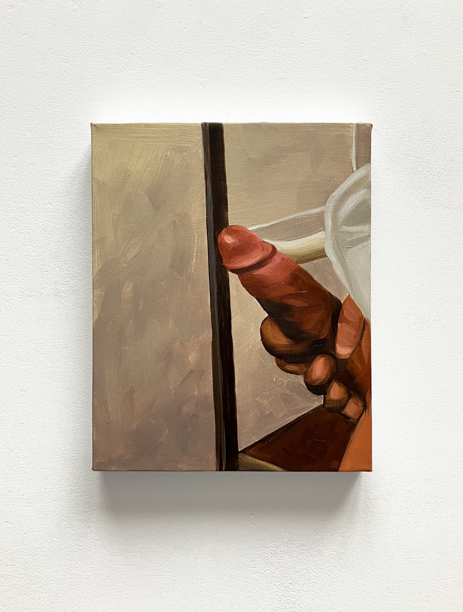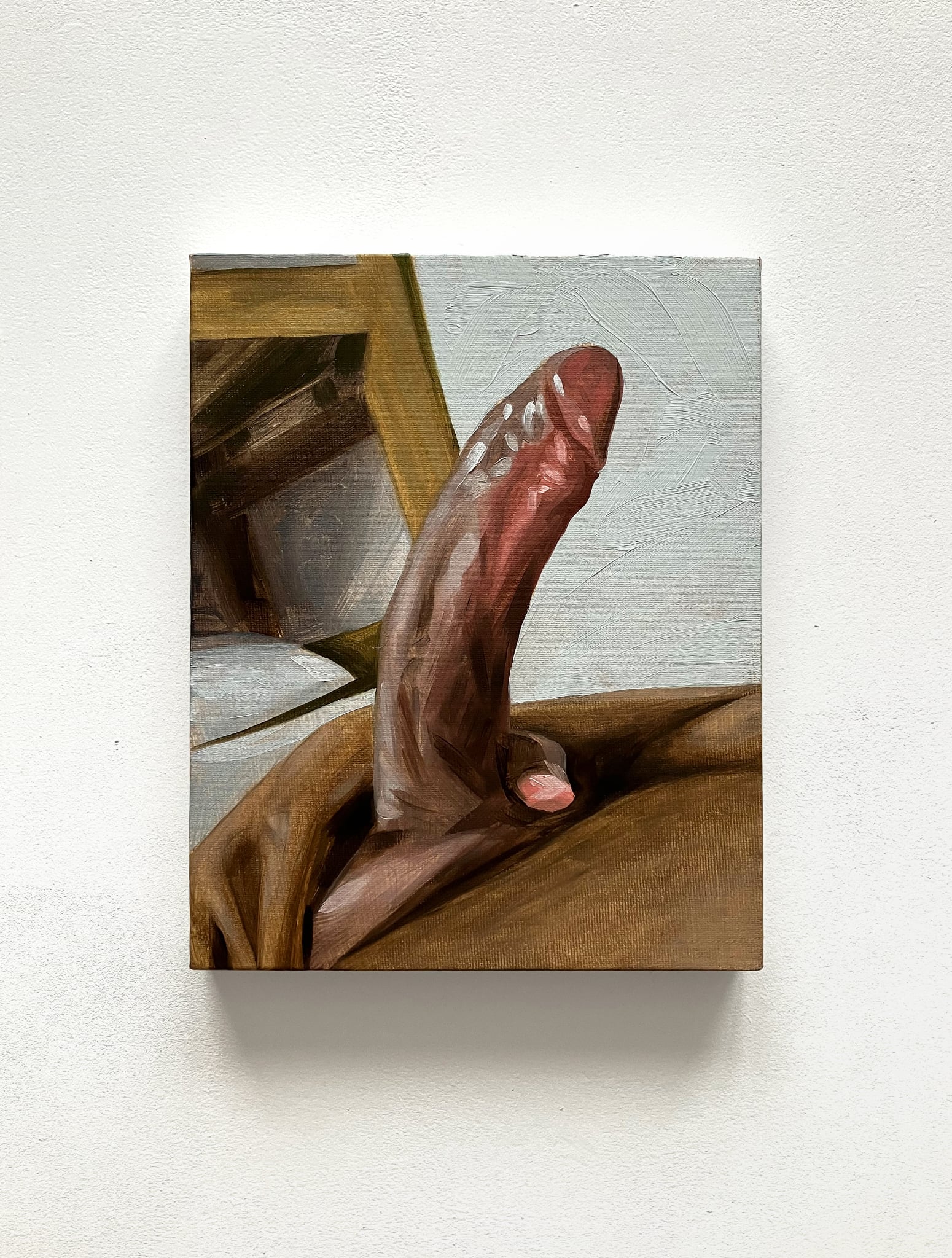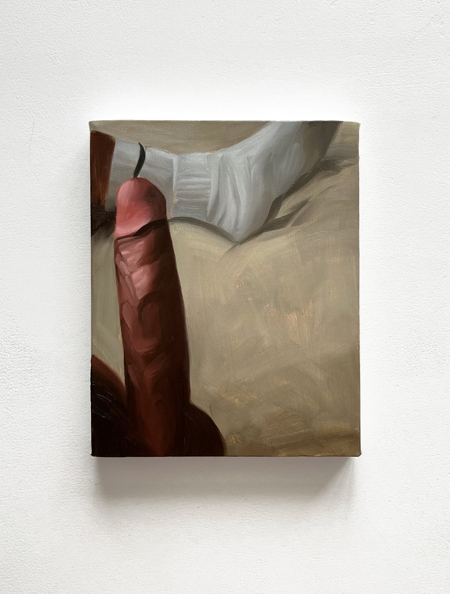 Each Panopti_CUM painting is oil on canvas, measuring 20 x 25 cm (7.9 x 9.8 in). I paint all of them based on photos received on Grindr or sent to me by email. If you’d like me to paint your cock as well and have it become a part of Panopti_CUM, just send me a pic and the painting will appear on the site soon.